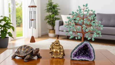 ફંગશુઈ કાચબો (Feng Shui Turtle): કાચબો લાંબુ આયુષ્ય, સ્થિરતા અને સંપત્તિનું પ્રતીક છે. ધાતુના કાચબાને પાણી ભરેલા પાત્રમાં રાખી ઉત્તર દિશામાં મૂકવો જોઈએ. આ ઉપાયથી વાસ્તુદોષ દૂર થાય છે અને ઘરના સભ્યો બીમારીઓથી સુરક્ષિત રહે છે.