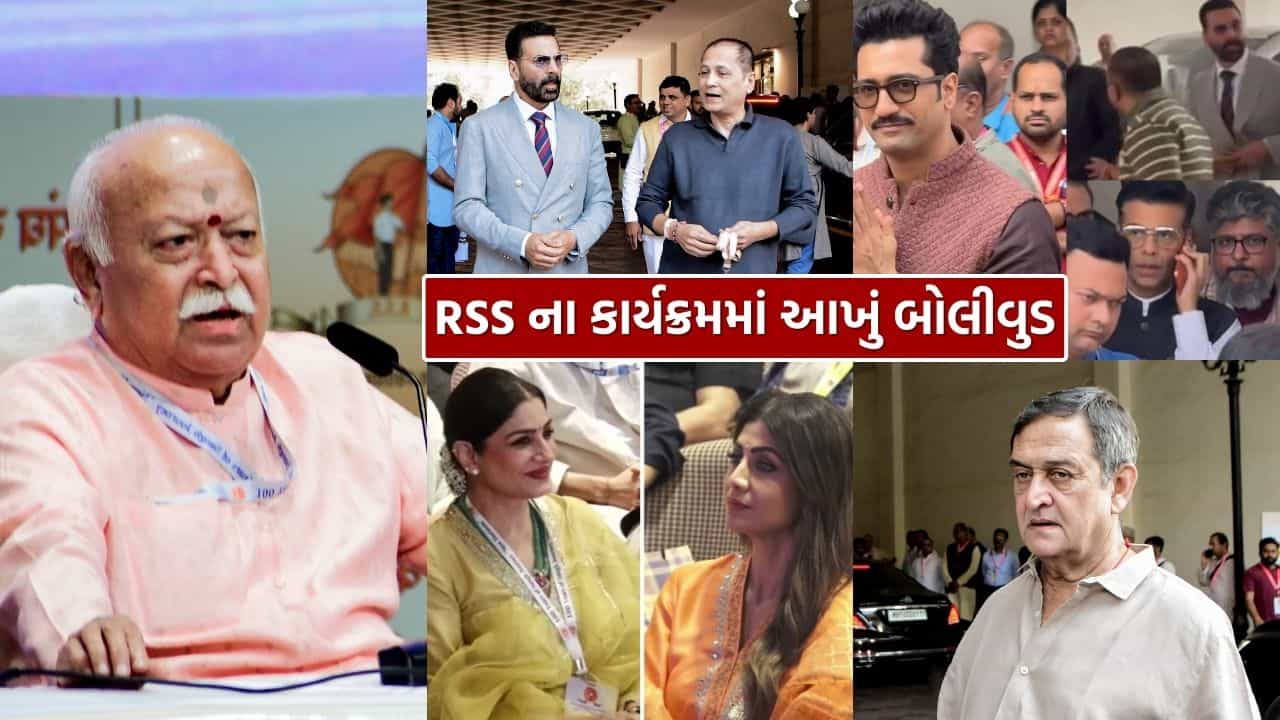 Bollywood Celebs Attend RSS Event:રાષ્ટ્રીય સ્વયંસેવક સંઘ (RSS)ની 100મી વર્ષગાંઠ નિમિત્તે મુંબઈમાં બે દિવસીય ભવ્ય કાર્યક્રમનું આયોજન કરવામાં આવ્યું છે. “સંઘ યાત્રા: ન્યૂ હોરાઇઝન્સ” નામના આ કાર્યક્રમમાં સમાજના વિવિધ ક્ષેત્રોના અગ્રણીઓ સાથે બોલિવૂડની જાણીતી હસ્તીઓ પણ મોટી સંખ્યામાં ઉપસ્થિત રહી હતી.