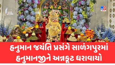 ગુજરાતના પ્રસિદ્ધ યાત્રાધામ બોટાદના સાળંગપુરમાં હનુમાનજીને હનુમાન જયંતિ પ્રસંગે વિશેષ અન્નકૂટ ધરાવાયો હતો. સાળંગપુરમાં હનુમાનજીને જયંતિ પ્રસંગે હનુમાનજીને વિવિધ ભોગ ધરાવવામાં આવ્યા હતા. બોટાદના સાળંગપુરમાં હનુમાનજીને હનુમાન જયંતિ પ્રસંગે આચાર્ય રાકેશ પ્રસાદજીએ પૂજન -અર્ચન કર્યા હતા. સાળંગપુરમાં હનુમાન જયંતિ પ્રસંગે દર્શન માટે ભકતોની ભારે ભીડ ઉમટી હતી.