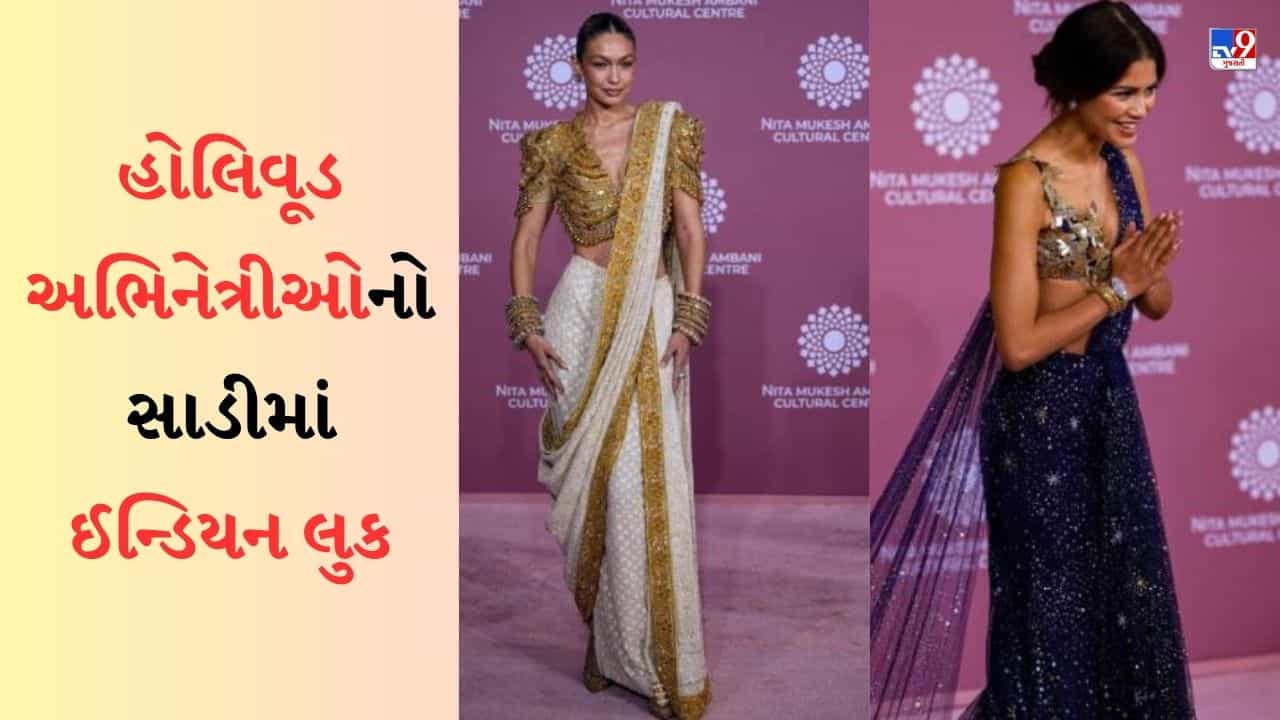 ગીગી હદીદ પણ સમારોહનો ભાગ બની હતી. ઝેન્ડાયાની સાથે તે સાડી લુકમાં પણ જોવા મળી હતી. તે ગોલ્ડન કલરની બોર્ડરવાળી સાડીમાં જોવા મળી રહી છે. આ સાથે તેણે હાથમાં ગોલ્ડન કલરની બંગડીઓ પણ પહેરી છે. (તસવીરઃ પીટીઆઈ)