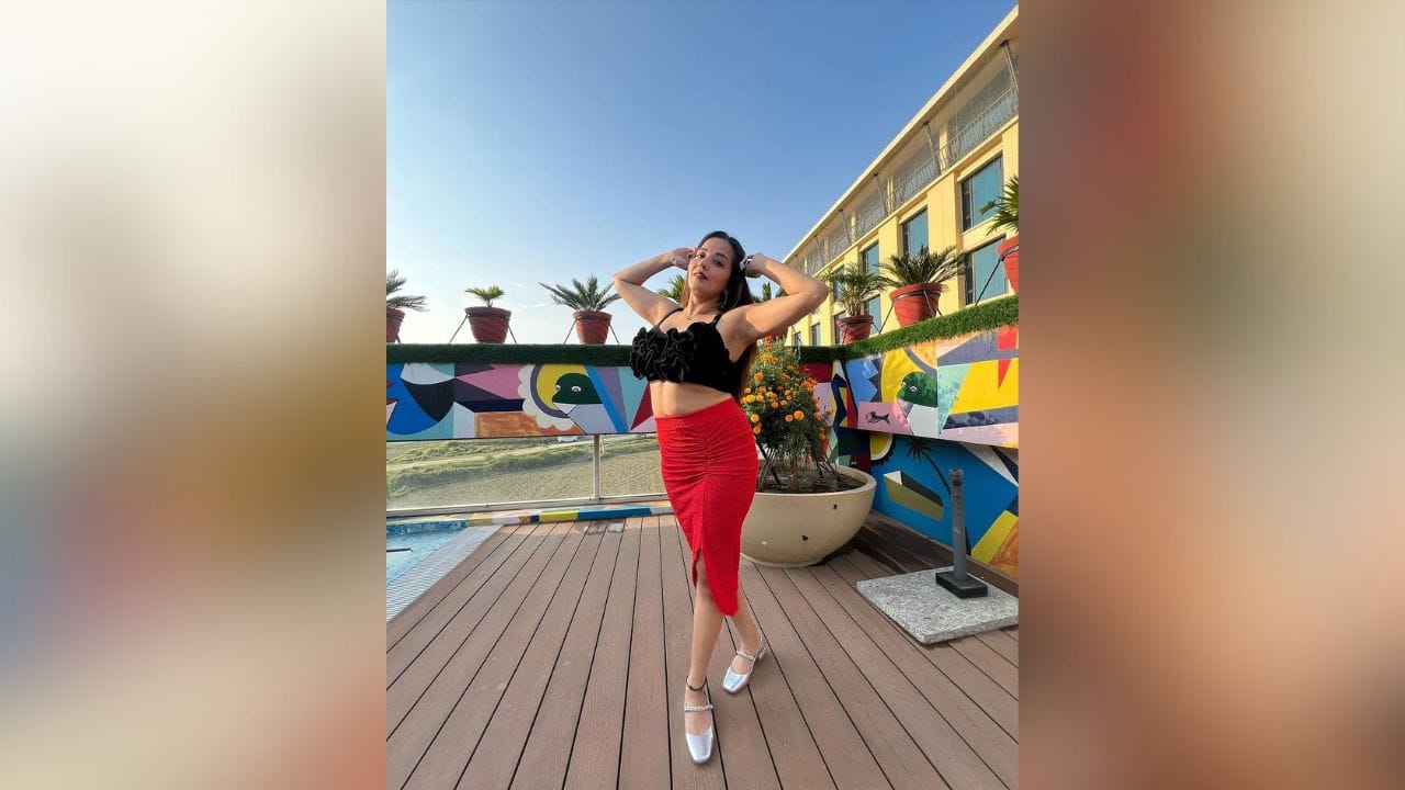 આ તસવીરોમાં મોનાલિસા બ્લેક ક્રોપ ટોપ અને રેડ કલરના સ્લિટ સ્કર્ટમાં ઘણા શાનદાર પોઝ આપતી જોવા મળે છે. (Image: Instagram)
