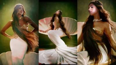 તારાના આ લેટેસ્ટ ફોટોશૂટના ફેન્સ વખાણ કરી રહ્યા છે. તારાના જલપરી લુકને કમ્પલીટ કરવા માટે મિરર વર્ક ટોપ પહેર્યું છે અને સુંદર વ્હાઈટ સ્કર્ટ પહેર્યું છે. લોન્ગ હેયર અને માથા પર તાજ પહેરીને તારા સુતરિયા એક મોટા શેલ પર બેઠી છે. (Image Credit: Tara Sutaria)