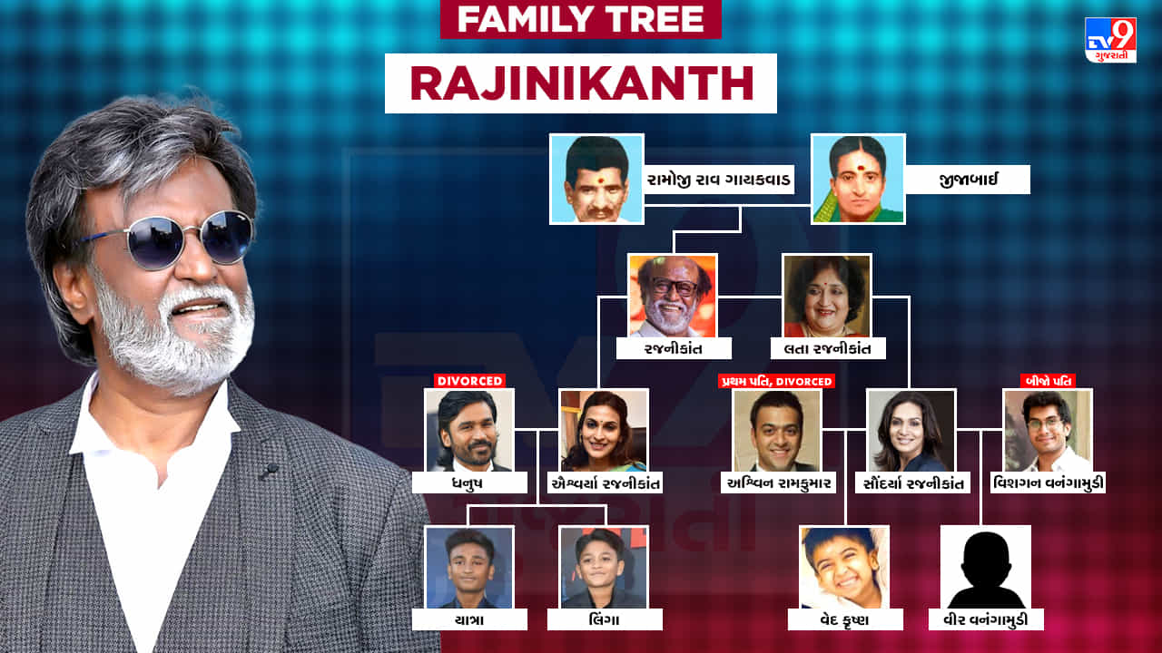 તમિલ ફિલ્મ ઈન્ડસ્ટ્રીના કેટલાક પરિવારો એવા છે જેઓ પોતાના અભિનયથી ઈન્ડસ્ટ્રી પર ઘણા સમયથી રાજ કરી રહ્યા છે. ચાલો આ શક્તિશાળી પરિવાર પર એક નજર કરીએ. તમિલ સુપરસ્ટાર રજનીકાંતની એક્ટિંગના દરેક લોકો દીવાના છે. રજનીકાંતે તમિલની ફિલ્મોની સાથે હિન્દી સિનેમામાં પણ ઘણું નામ કમાયું છે. લોકોને તેમની પ્રોફેશનલ લાઈફમાં પણ એટલી જ રસ છે જેટલો તેમની પર્સનલ લાઈફમાં હોય છે.