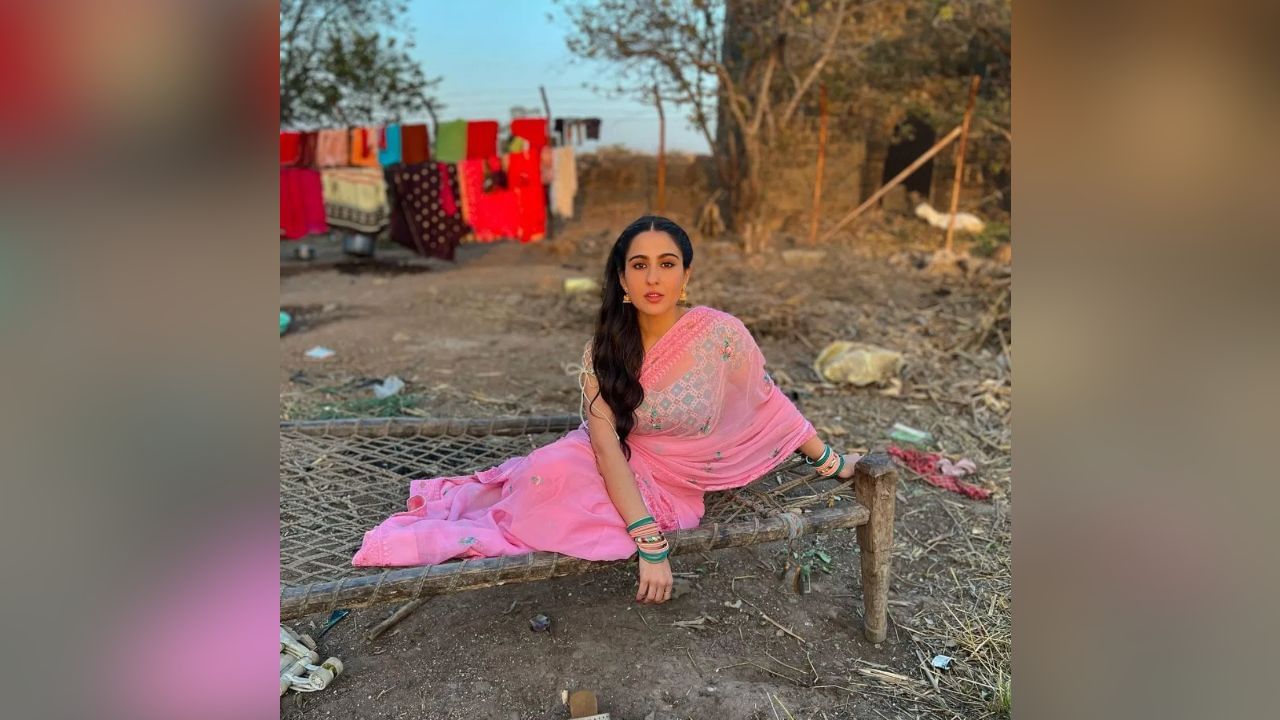 સારાએ હાલમાં તેની નવી તસવીરો શેર કરી છે. જેમાં તે એકદમ સિમ્પલ અંદાજમાં જોવા મળી રહી છે. હાથમાં લીલી અને પીળી સાદી બંગડીઓ, માંગમાં સિંદૂર અને પિંક કર્લ પ્રિન્ટેડ સાડી પહેરેલી સારા દેશી વહુ જેવી લાગી રહી છે. તેના આ લુકના ફેન્સ દિવાના થઈ ગયા છે. (Image: Sara Ali Khan Instagram)