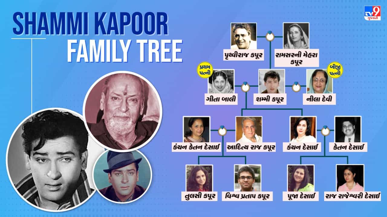 શમ્મી કપૂરનું અવસાન 14 ઓગસ્ટ 2011ના રોજ થયું હતું. અભિનેતાનો જન્મ 1931માં પૃથ્વીરાજ કપૂરને ત્યાં થયો હતો.શમ્મી કપૂર છેલ્લે અભિનેતા રણબીર કપૂરની ફિલ્મ રોકસ્ટારમાં જોવા મળ્યા હતા. આ ફિલ્મ વર્ષ 2011માં રિલીઝ થઈ હતી. તો ચાલો આજે અભિનેતાના પરિવાર વિશે જાણીએ.