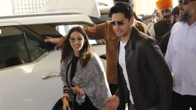 સિદ્ધાર્થ પણ જીન્સ, ટી-શર્ટ અને લેધર જેકેટમાં ખૂબ જ હેન્ડસમ લાગતો હતો. લગ્ન પછી બંને પહેલીવાર એકસાથે જોવા મળ્યા છે. (PC: Twitter)