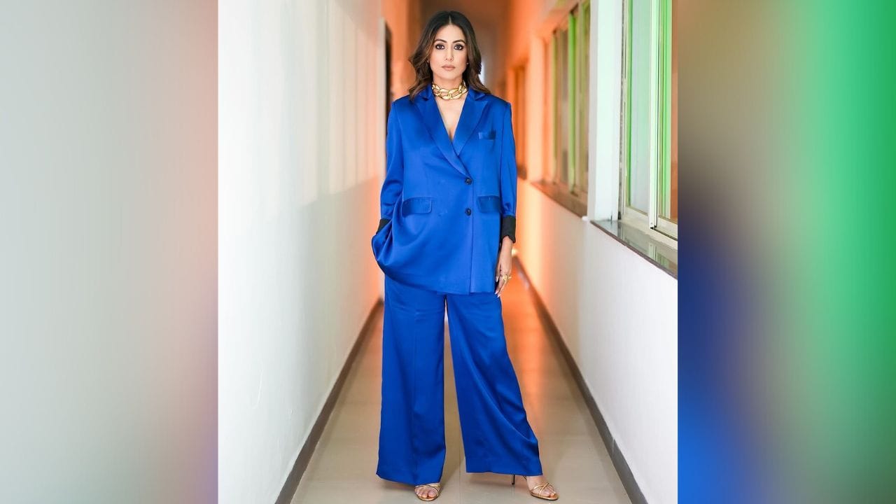 Gujarati News Photo gallery Cinema photos Television Actress hina khan bossy looks in blue pant suit see photos