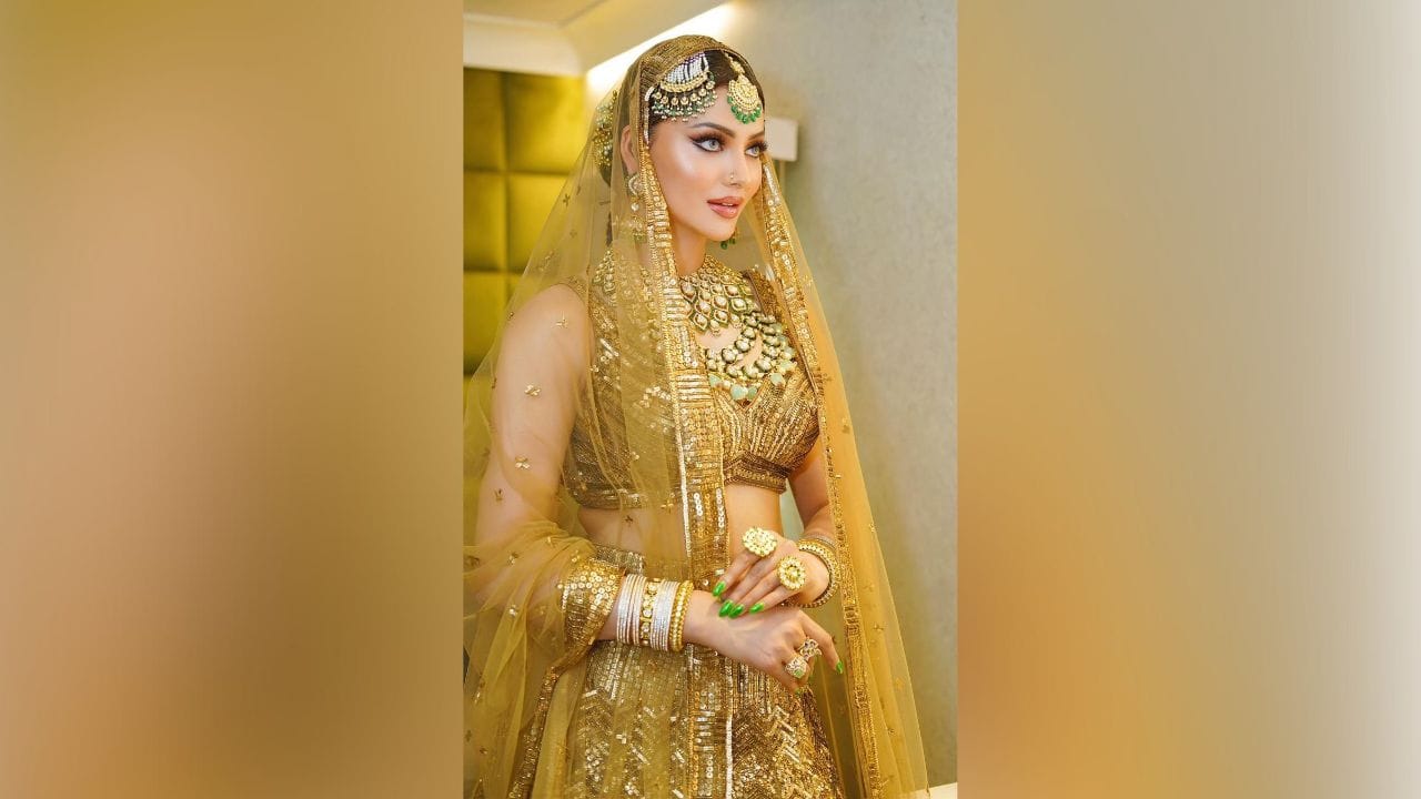 Urvashi Rautela Photos: કોની દુલ્હન બની ઉર્વશી રૌતેલા? ગોલ્ડન અઉટફિટમાં ફોટો થયા વાયરલ