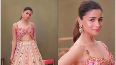 આલિયાએ લહેંગા સાથે મેચિંગ પિંક કલરની ઈયરિંગ્સ પહેરી છે. આ લુકમાં આલિયાએ લહેંગા સાથે દુપટ્ટો કેરી નથી કર્યો. આઈવરી શેડના લહેંગામાં આલિયા હંમેશાની જેમ ખૂબ જ સુંદર લાગી રહી છે.