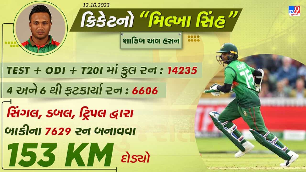 શાકિબ અલ હસને ટેસ્ટ, વનડે અને T20 ત્રણેય ફોર્મેટમાં સિંગલ, ડબલ, ટ્રિપલ દ્વારા 7629 રન બનાવ્યા છે અને તે 22 યાર્ડની પીચ પર 153 KM દોડ્યો છે.