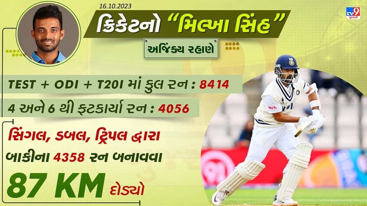અજિંક્ય રહાણે ટેસ્ટ, વનડે અને T20 ત્રણેય ફોર્મેટમાં સિંગલ, ડબલ, ટ્રિપલ દ્વારા 4358 રન બનાવ્યા છે અને તે 22 યાર્ડની પીચ પર 87 KM દોડ્યો છે.