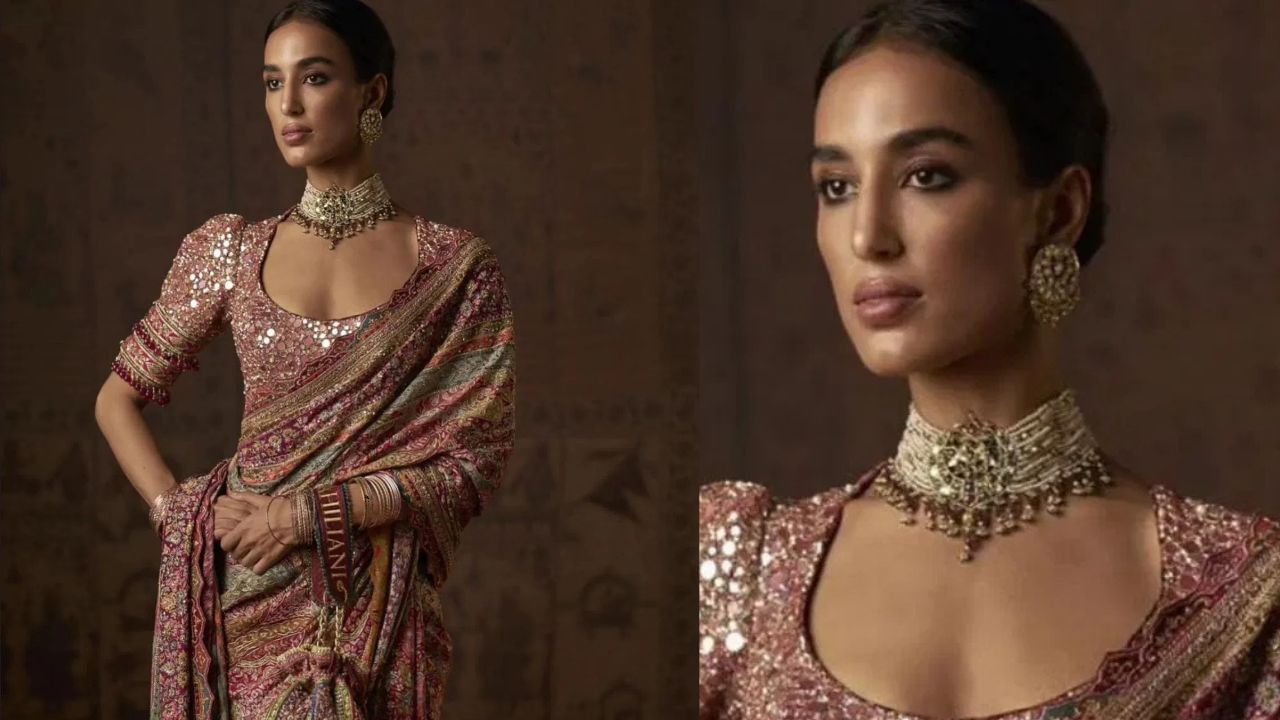 હાર્દિક પંડ્યાની રુમર્ડ ગર્લફ્રેન્ડ માહિકા શર્મા, આ ફોટામાં ભારે સિક્વન્સવાળી સાડી પહેરેલી જોવા મળે છે. તેણીએ મેચિંગ બ્લાઉઝ સાથે જોડી બનાવી છે. તેણીએ ચોકર સેટ અને મેચિંગ સ્ટડ્સ સાથે સાડી પહેરી છે. સ્લીક બન અને ન્યૂડ મેકઅપ સાથે માહિકા ખૂબ જ સુંદર લાગે છે.