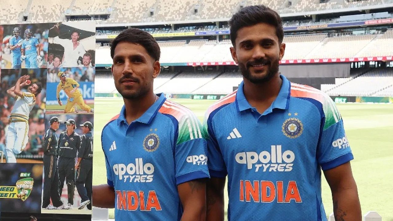 પર્થના ઓપ્ટસ સ્ટેડિયમમાં ધ્રુવ જુરેલ અને નીતિશ રેડ્ડી ટીમ ઈન્ડિયાની નવી ODI જર્સી પહેરેલા જોવા મળ્યા હતા. આ જર્સીમાં ખભા પર ત્રિરંગાના શેડ્સ અને આગળના ભાગમાં નવા સ્પોન્સરનો લોગો છે.