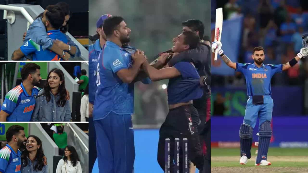ચેમ્પિયન્સ ટ્રોફી 2025 માં એક ક્ષણ એવી આવી જ્યારે ઇંગ્લેન્ડ સામે અફઘાનિસ્તાનની જીત પછી એક ચાહક સ્ટેડિયમમાં ઘૂસી ગયો. આ ઝઘડા દરમિયાન, ચાહકે અફઘાન ખેલાડીનો કોલર પકડી લીધો. ટુર્નામેન્ટની આ ઘટના પણ ક્યારેય ભૂલી શકાય નહીં. (All Image - BCCI,PTI)