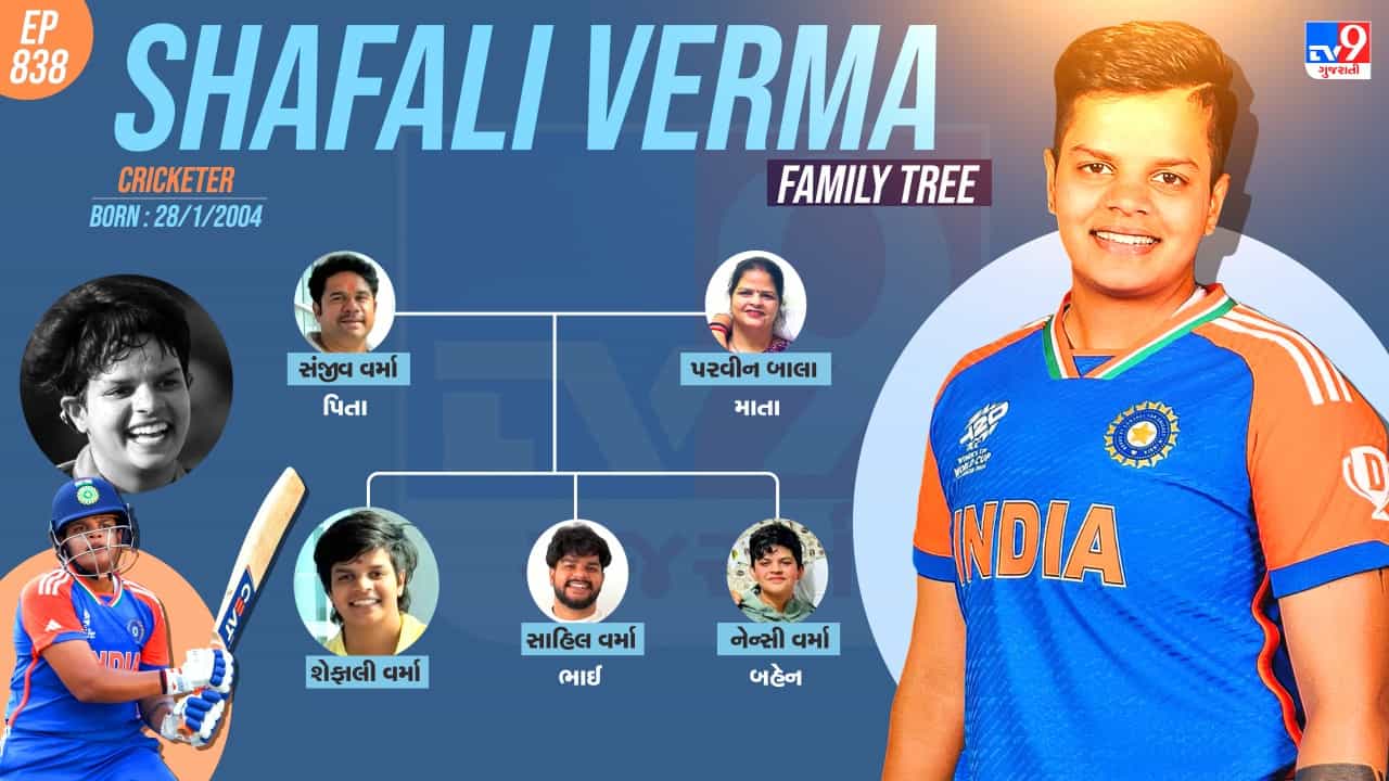યુવા સેન્સેશન શેફાલી વર્મા મહિલા ODI વર્લ્ડ કપ 2025ના ફાઇનલમાં ટીમ ઇન્ડિયાની સૌથી મોટી મેચ વિજેતા સાબિત થઈ હતી. તેમણે ટીમ માટે સૌથી વધુ રન બનાવ્યા અને બે વિકેટ પણ લીધી હતી.શેફાલી વર્માનો પરિવાર જોઈએ.