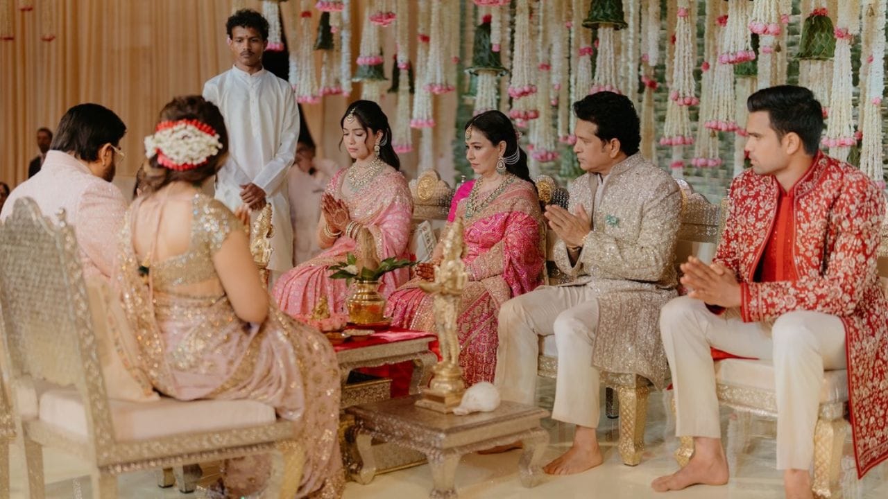 સાનિયા અને અર્જુન તેંડુલકરના લગ્ન 5 માર્ચના રોજ હતા. પરંતુ હવે તેના પ્રી-વેડિંગ ફંક્શનના ફોટો સામે આવી રહ્યા છે.