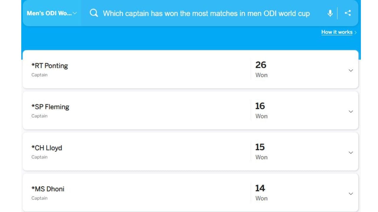 વર્લ્ડ કપના સૌથી સફળ કેપ્ટનની લિસ્ટમાં સૌથી પહેલુ નામ ઓસ્ટ્રેલિયન કેપ્ટનનું જ છે. આ લિસ્ટમાં ભારતનો સૌથી લોકપ્રિય કેપ્ટન પણ સામેલ છે.