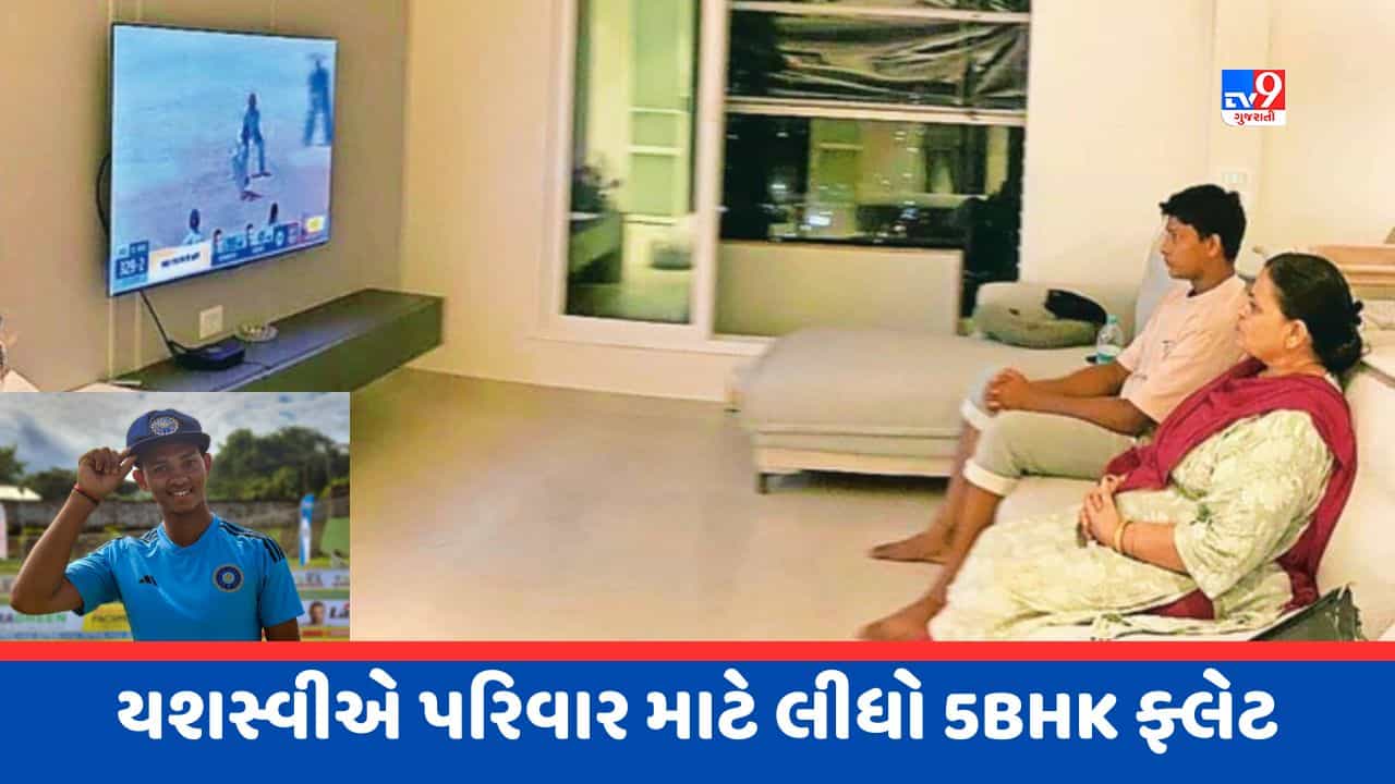 મુંબઈમાં છેલ્લા 2 વર્ષથી ભાડાના ફ્લેટમાં રહેતો યશસ્વીનો પરિવાર હવે 5 BHKના ફ્લેટમાં શિફ્ટ થયો છે. ઐતિસાહિક ટેસ્ટ ડેબ્યૂ બાદ તેના પરિવારને તેણે આ ગિફ્ટ આપી છે. તેના નવા ઘરમાં તેની માતા અને ભાઈ ટીવી પર યશસ્વીની બેટિંગ જોતા જોવા મળી રહ્યા છે.