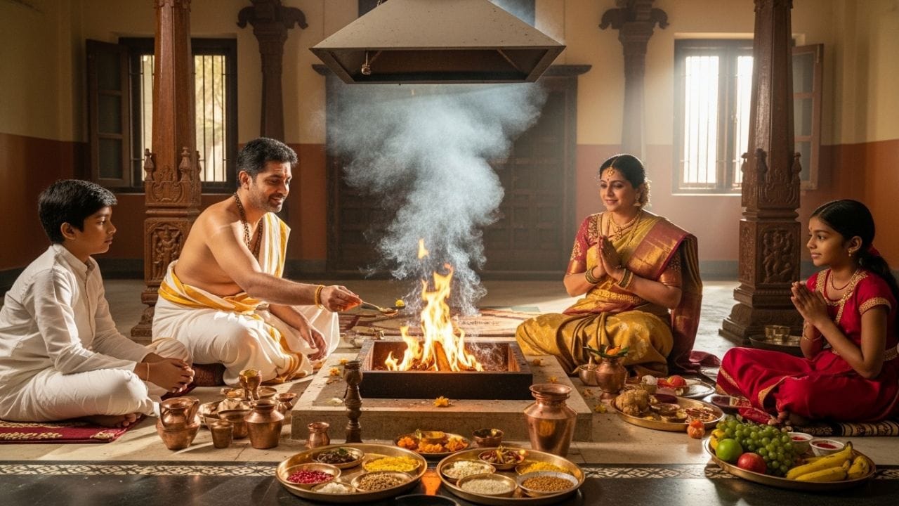 2. ઉર્જા પરિપથ : હવન દરમિયાન, મંત્રોનો જાપ અને અગ્નિની શુદ્ધતા એક ખાસ 'ઉર્જા પરિપથ' બનાવે છે. તેને ઇલેક્ટ્રિક સર્કિટની જેમ વિચારો. જ્યારે તમે મંત્રોના જાપ દરમિયાન બેસો છો, ત્યારે તે ઊર્જા તમારા શરીરમાં અને ઘરના વાતાવરણમાં વહે છે. વચ્ચેથી ઉઠવાથી તે ઊર્જા પ્રવાહમાં વિક્ષેપ પડે છે.