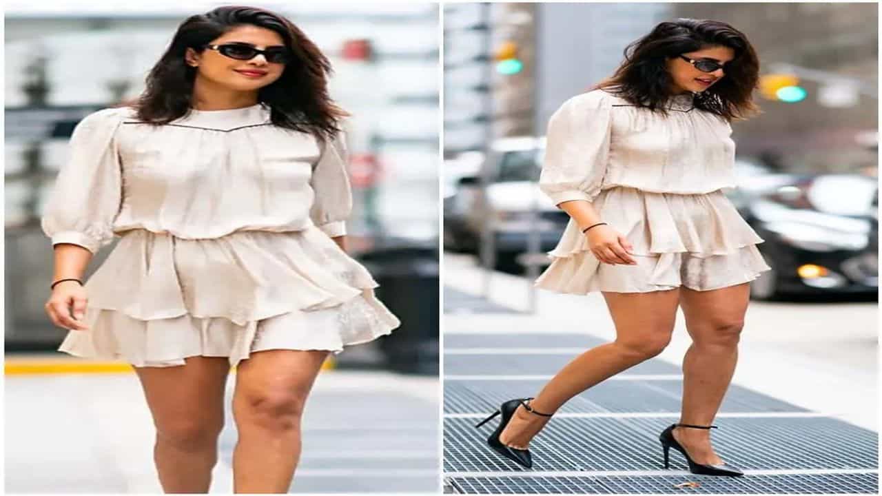 પ્રિયંકા ચોપરા - આ તસવીરમાં પ્રિયંકા ચોપરાએ ઓફ-વ્હાઈટ મીની ડ્રેસ પહેર્યો છે. થ્રી ફોર્થ સ્લીવ્સ સાથેનો આ ડ્રેસ ઉનાળા માટે બેસ્ટ છે. પ્રિયંકાએ બ્લેક લેધર હીલ્સ સાથે ડ્રેસ પેયર કર્યો હતો.