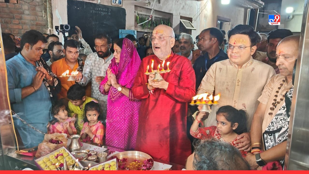 મંદિરના પૂજારી જગદીશ પાઠક, દ્વારા અમિત શાહના પરિવારને ગણપતિ પૂજા, પુણ્યા વાચન અને માતાજીની પૂજા-અર્ચના કરાવી હતી.