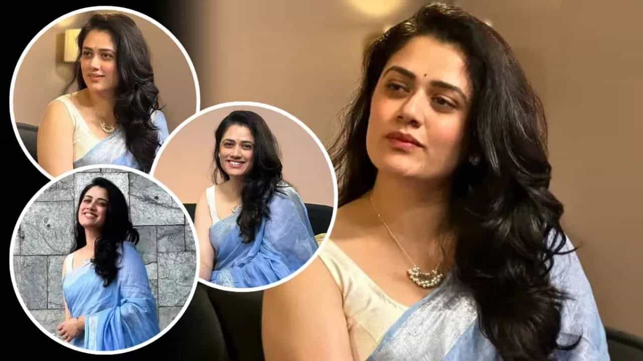 ગિરિજા ઓક ગોડબોલે હંમેશા સાદગીભર્યા અને સુંદર અંદાજમાં નજર આવે છે. એક્ટ્રેસે ઓલિવ ગ્રીન કલરની બ્લેન્ડ બ્લુ બોર્ડરવાળી લિનન સાડી પહેરી છે અને સાથે ઇલેક્ટ્રિક બ્લુ કલરના બ્લાઉઝથી ક્લાસી કોન્ટ્રાસ્ટ તૈયાર કર્યો છે. એક્સટ્રેસની જેમ સાડી ઇવનિંગ સનલાઇટ ફોટો માટે પરફેક્ટ રહેતી છે.