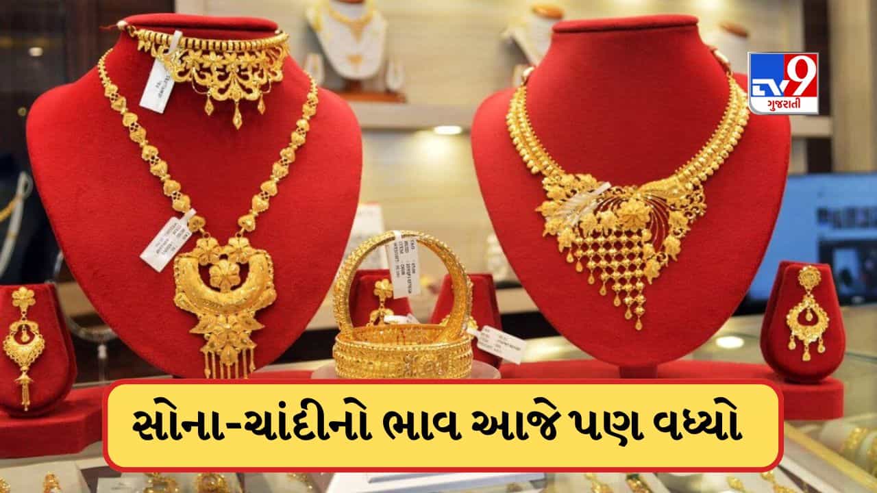 અમેરિકન ટેરિફના કારણે સોના અને ચાંદીના ભાવમાં સતત વધારો જોવા મળી રહ્યો છે. આજે સતત બીજા દિવસે તેમના ભાવમાં વધારો થયો છે. સ્થિર રહ્યા પછી સતત બીજા દિવસે સોનાના ભાવમાં વધારો થયો છે. રાજધાની દિલ્હીમાં, 24 કેરેટ સોનાના ભાવમાં ₹10 પ્રતિ દસ ગ્રામ અને 22 કેરેટ સોનાના ભાવમાં ₹10નો વધારો થયો છે. બે દિવસમાં, 24 કેરેટ સોનાના ભાવમાં ₹2,470 પ્રતિ દસ ગ્રામ અને 22 કેરેટ સોનાના ભાવમાં ₹2,260નો વધારો થયો છે. હવે, દિલ્હીમાં સતત બીજા દિવસે ચાંદીના ભાવમાં વધારો થયો છે. એક દિવસ સ્થિર રહ્યા પછી, બે દિવસમાં દિલ્હીમાં એક કિલો ચાંદી ₹10,100 મોંઘી થઈ ગઈ છે.