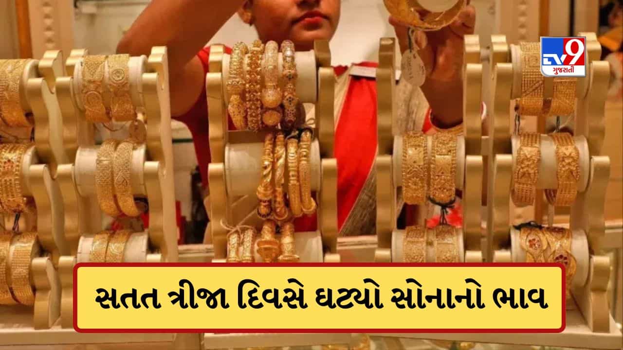 દેશમાં સોનાના ભાવમાં સાપ્તાહિક ધોરણે ઘટાડો નોંધાયો છે. છેલ્લા અઠવાડિયામાં, 24 કેરેટ સોનાના ભાવમાં ₹1,740નો ઘટાડો થયો છે. દરમિયાન, 22 કેરેટ સોનાના ભાવમાં ₹1,600નો ઘટાડો થયો છે. આજે, 26 એપ્રિલ સુધીમાં, રાષ્ટ્રીય રાજધાની દિલ્હીમાં 24 કેરેટ સોનાનો ભાવ ₹154,190 પ્રતિ 10 ગ્રામ છે. મુંબઈમાં, ભાવ ₹154,040 પ્રતિ 10 ગ્રામ છે. શુક્રવાર, 24 એપ્રિલના રોજ, દિલ્હીના બુલિયન બજારમાં સોનાના ભાવ ₹200 ઘટીને ₹155,900 પ્રતિ 10 ગ્રામ પર સ્થિર થયા. દરમિયાન, આંતરરાષ્ટ્રીય બજારમાં, હાજર સોનાનો ભાવ ₹4,708.17 પ્રતિ ઔંસ પર ટ્રેડ થઈ રહ્યો છે.(ફોટો ક્રેડિટ- File Image)