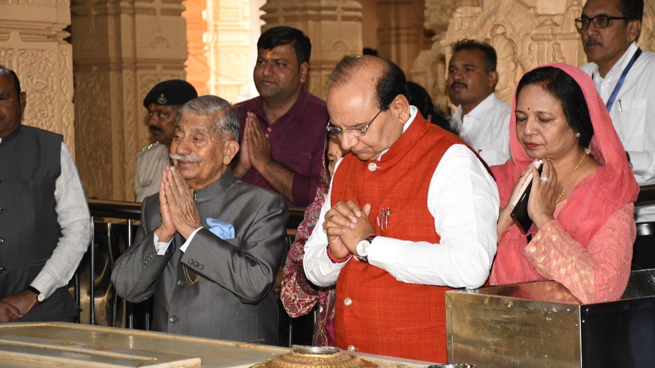 સ્વાગત બાદ બંને રાજ્યપાલો પરિવાર સાથે સોમનાથ મહાદેવના મંદિરે પહોંચ્યા હતા અને તેમણે ત્યાં પૂજા સામગ્રી, પુષ્પો, બિલ્વપત્રો અને પુષ્પમાળા સોમનાથ મહાદેવને અર્પણ કરી હતી.