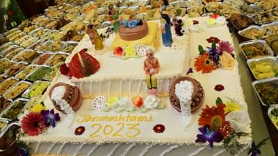 આજે કૃષ્ણ જન્માષ્ટમીના પાવન અવસર પર મંદિર ખાતે 56 ભોગના પ્રસાદનું આયોજન કરવામાં આવ્યું હતું. જેમાં અવનવી વાનગીઓ ભગવાન શ્રી કૃષ્ણને ધરવામાં આવી હતી.