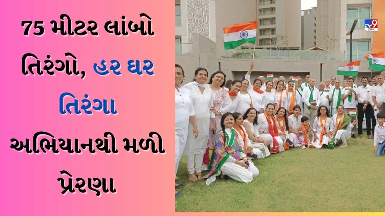 રાજકોટના સિલ્વર હાઈટ્સ એપાર્ટમેન્ટમાં આ આયોજન કરવામાં આવ્યું હતું. આ ઉંચી બિલ્ડિંગ પર 75 મીટર લાંબો લહેરાયો તિરંગો લહેરાયો હતો.