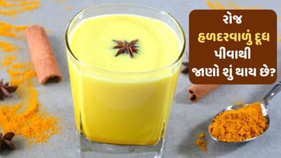 વજન ઘટાડે : હળદરવાળું દૂધ પીવાથી વજન ઝડપથી ઘટાડી શકાય છે. વાસ્તવમાં, હળદરમાં હાજર કર્ક્યુમિન તત્વ, તેના બળતરા વિરોધી ગુણોને કારણે, શરીરની ચરબીને ઝડપથી કાપવાનું શરૂ કરે છે. આ ઉપરાંત શરીરનું મેટાબોલિઝમ સ્વસ્થ રહે છે અને વજન આપોઆપ ઓછું થવા લાગે છે.(ફોટો ક્રેડિટ-Getty image)