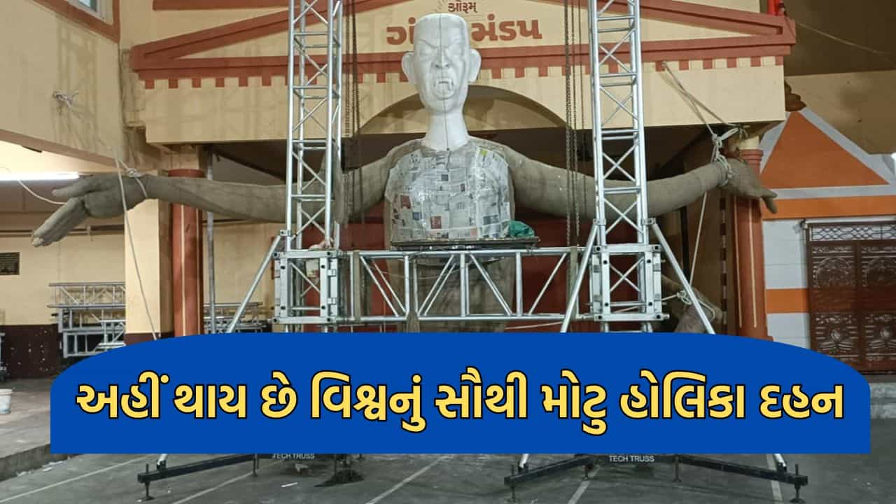વિશ્વના સૌથી મોટા હોલિકા ઉત્સવની પ્રકૃતિને અનુરૂપ સામગ્રી દ્વારા ઉજવણી કરવામાં આવે છે. જેમા ત્રણ થી ચાર ટનનું 25 ફુટ ઉંચુ હોળિકા માતાનું પૂતળુ બનાવવામાં આવે છે.