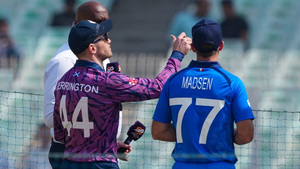 ઇટાલીએ T20 વર્લ્ડ કપમાં પોતાનું ડેબ્યૂ કર્યું. કોલકાતાના ઇડન ગાર્ડન્સમાં ટીમ સ્કોટલેન્ડ સામે હારી ગઈ. આ મેચમાં વેઇન મેડસેને ઇટાલીનું નેતૃત્વ કર્યું. સ્કોટલેન્ડે પહેલા બેટિંગ કરી અને ઇનિંગની શરૂઆતમાં મેડસેન ઘાયલ થયો. ચોથી ઓવરમાં, તેણે જ્યોર્જ મુન્સીના શોટને રોકવા માટે ડાઇવ માર્યો. બોલ અટક્યો નહીં, પરંતુ તેણે પોતાને ઇજા પહોંચાડી. (Image Cridet: PTI)