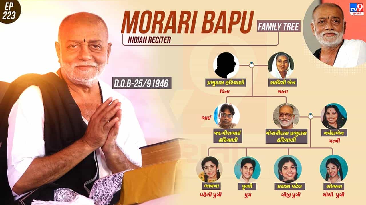 ભાવનગર મહુવા જાણીતા કથાકાર મોરારીબાપુના ધર્મ પત્નીનું નિધન થયું છે. નર્મદાબેન મોરારીદાસ હરિયાણીનું નિધન થયું છે. ભાવનગર મહુવાના તલગાજરડાના નિવાસસ્થાને નિધન થયું હોવાના દુઃખદ સમાચાર મળ્યા છે. મોરારીબાપુના લગ્ન વણોટ ગામે નર્મદાબા સાથે થયા હતા. આજે તેઓની સમાધિ વિધિ તલગાજરડા મુકામે કરાશે.આજે આપણે મોરારી બાપુના પરિવાર વિશે જાણીશું.
