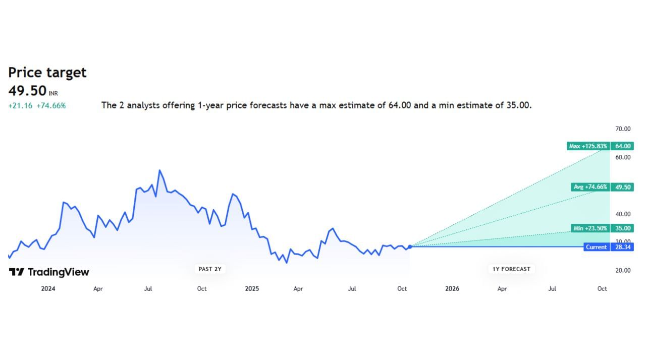 Hindustan Construction Co. Ltd.ના હાલ શેર પ્રાઈઝ 28.34 છે. તે વધીને 64 સુધી જઈ શકે તેવી સંભાવના છે. તે શેર અત્યારે નીચે જાય તેવી શક્યતા ઓછી દેખાય રહી છે.