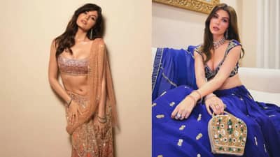 પીચ રંગના સિક્વિન લહેંગામાં તેઓ ગ્લેમરસ અંદાજમાં જોવા મળે છે. બ્રેલેટ-સ્ટાઇલ બ્લાઉઝ અને ફિશ-કટ ફ્લોઇંગ લહેંગા આઉટફિટને આધુનિક અને સ્ટાઇલિશ બનાવે છે. સોફ્ટ વેવ્સ, ન્યૂડ મેકઅપ, ગ્લોસી લિપ શેડ અને બોલ્ડ જ્વેલરી સાથેનો લુક કોકટેલ પાર્ટી અથવા રિસેપ્શન માટે યોગ્ય છે.