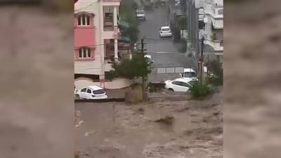 પૂરના પાણીના જોરદાર પ્રવાહને કારણે કાર રમકડાની જેમ રસ્તા પર તરતી જોવા મળી હતી. ઘણી કાર એકબીજા સાથે અથડાઈ અને કેટલીક એક બીજાની ઉપર ચઢી ગઈ હતી.