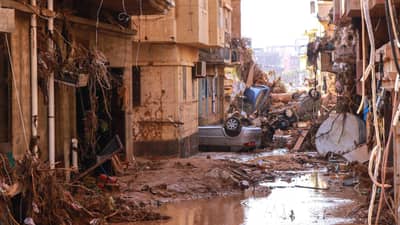 અધિકારીઓએ જણાવ્યું હતું કે ભૂમધ્ય સમુદ્રમાંથી રવિવારે રાત્રે ઉદભવેલા વાવાઝોડા 'ડેનિયલ'ના કારણે આવેલા પૂરથી પૂર્વી લિબિયાના ઘણા શહેરોમાં ભારે વિનાશ થયો હતો. ડર્ના શહેરને સૌથી વધુ નુકસાન થયું હતું. ભારે વરસાદ અને પૂરના કારણે ડેમ તૂટ્યા, જેના પાણી આસપાસના વિસ્તારોમાં પહોંચી ગયા છે.
