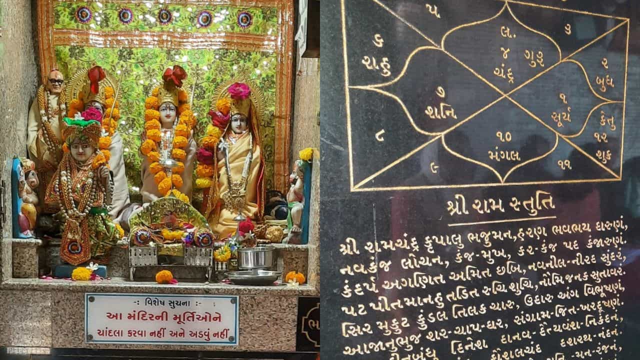 રાજકોટ શહેરમાં આમ્રપાલી બ્રિજ પાસે આવેલ એક મંદિર છે જ્યાં ખુદ ભગવાન પ્રભુ શ્રીરામની જન્મકુંડળી છે. પ્રભુ શ્રીરામની જન્મ કુંડળીમાં કયા ગ્રહો એ કેવી રીતે ભાગ ભજવ્યો, જેથી તે ભગવાન રામ રાજા પણ થઈ શક્યા. આ જન્મ કુંડળીમાં ભગવાનને શા માટે વનવાસ કરવો પડ્યો તે ગ્રહોની દશા પણ દર્શાવાય છે.