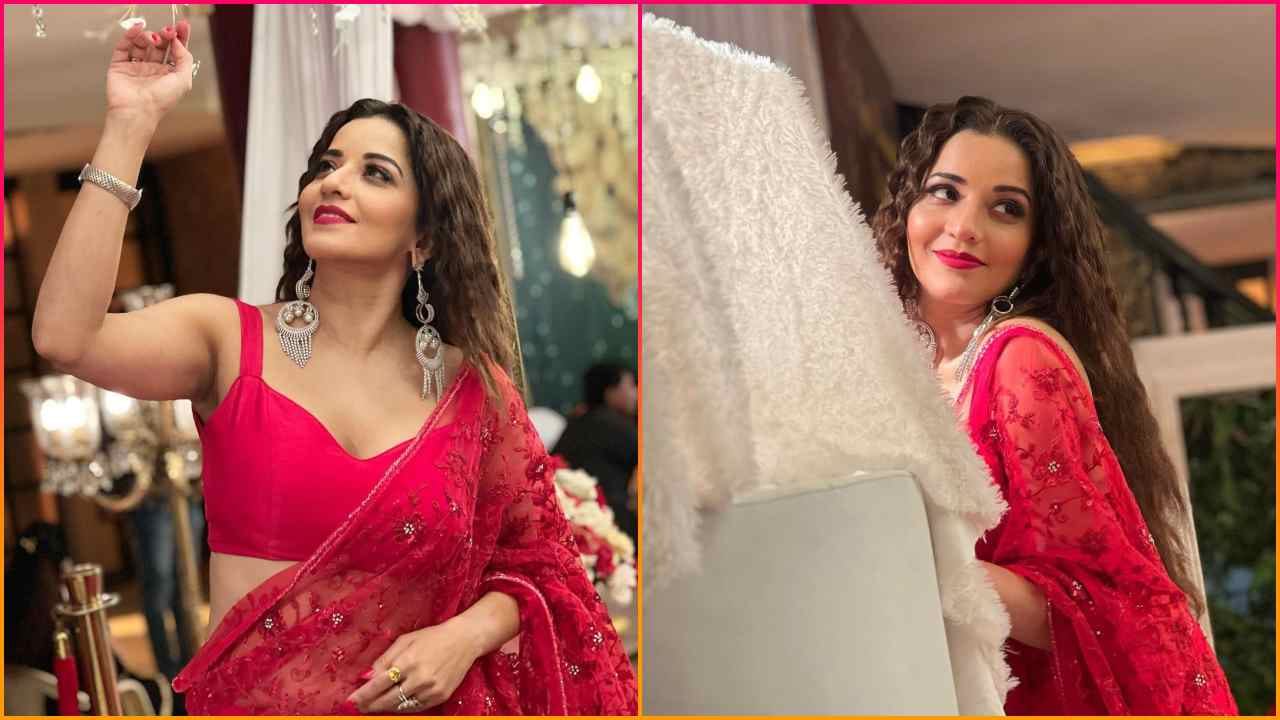 અભિનેત્રી મોનાલિસા લાલ સાડી અને ડીપનેક બ્લાઉઝમાં આકર્ષક લાગી રહી છે. અભિનેત્રી મોનાલિસા મોટી ઇયરિંગ્સ અને કર્લ હેર સ્ટાઇલમાં આકર્ષક લાગી રહી છે. એક્ટ્રેસે શેર કરેલી તસવીરો પર ચાહકો દિલ હારી રહ્યા છે.
