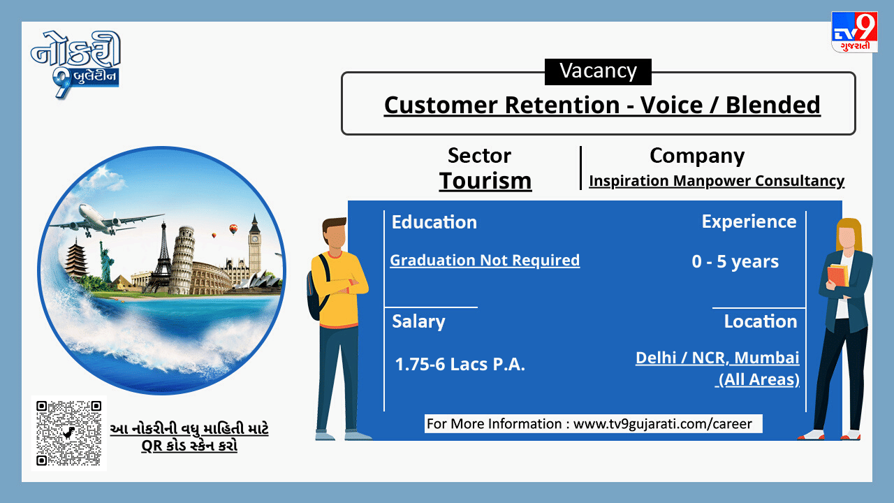 Naukri9: સ્નાતકો માટે પ્રવાસન ક્ષેત્રમાં નોકરીની નવી તકો, મળશે મહિને 83,000થી વધુ પગાર