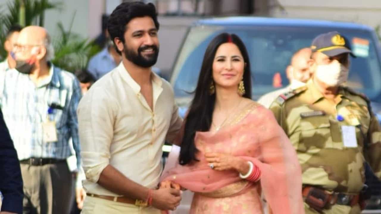 આ દરમિયાન કેટરિના કૈફ પિંક કલરના સૂટમાં જોવા મળી હતી, જ્યારે વિકી કૌશલ શર્ટ-પેન્ટમાં જોવા મળ્યો હતો.
