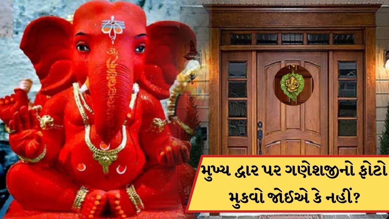 ઘરના મુખ્યદ્વાર પર ગણેશજીનો ફોટો મુકવાથી સુખ, સમૃદ્ધિ અને સુખાકારી આવે છે. ઘરના મુખ્ય દ્વારના દરવાજા ઉપર ગણેશજીની પ્રતિમાં લગાવવી અતિ શુભ માનવામાં આવે છે.