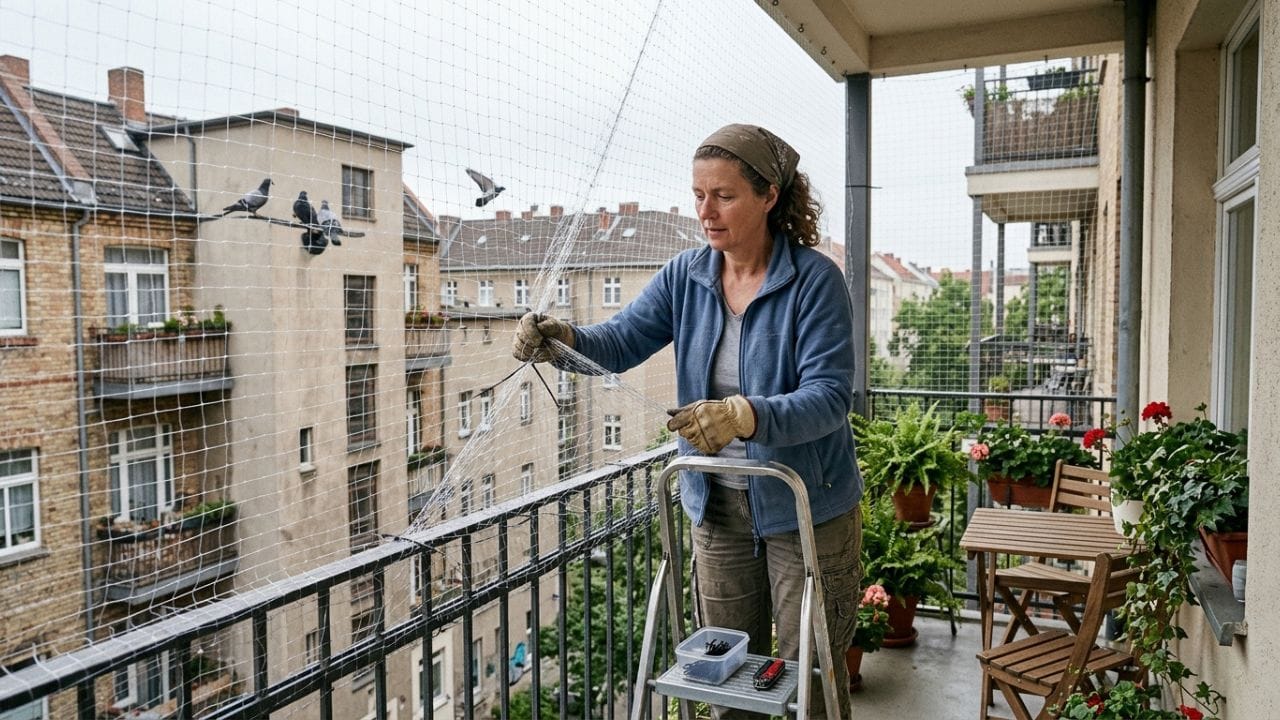બર્ડ નેટ (જાળી) - સૌથી પાકો ઈલાજ: કબૂતરોને બાલ્કનીમાં આવતા રોકવાનો સૌથી સરળ અને કાયમી ઉપાય છે 'બર્ડ નેટ'. મજબૂત નાયલોનની જાળી લગાવવાથી કબૂતરો અંદર પ્રવેશી શકતા નથી. ખાસ ધ્યાન રાખવું કે જાળી બરાબર ફિટ હોય અને ક્યાંયથી પણ ખુલ્લી જગ્યા ન રહે.