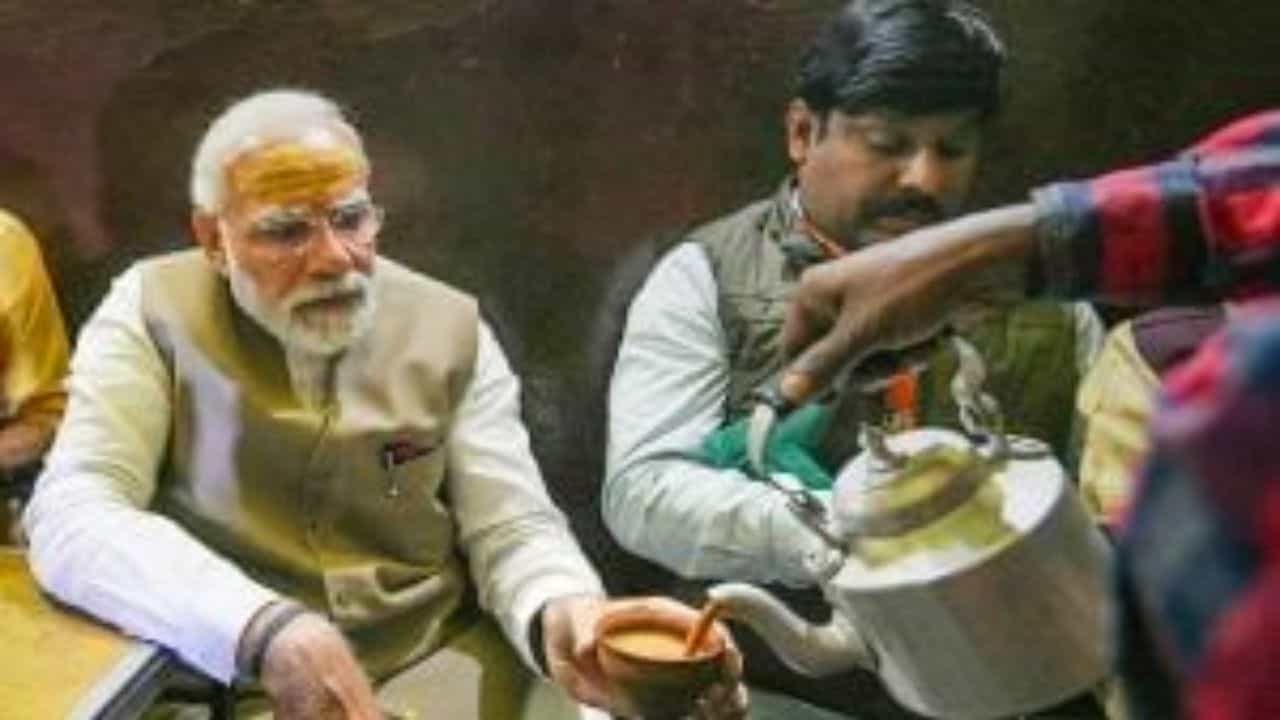 ઉત્તરપ્રદેશમાં સાતમાં તબક્કાના ચૂંટણી પ્રચાર માટે વારાણસીમાં વડાપ્રધાન મોદીએ શુક્રવારે મોડી રાત્રે અસ્સી ઘાટ પર એક ચાની દુકાનની મુલાકાત કરી.