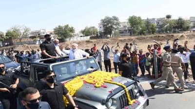 પીએમ મોદીનો આજે સતત બીજા દિવસે રોડ શો હતો. ભારે સિક્યોરિટીની વચ્ચે પીએમ મોદી લોકોને મળ્યા હતા. ભારે જનમેદની વચ્ચે સુરક્ષા જવાનોનો મોટો કાફલો નજરે પડતો હતો.