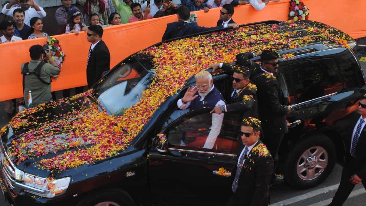 માર્ગમાં ઠેર-ઠેર શહેરની વિવિધ સંસ્થાઓ, વિવિધ સમાજના અગ્રણીઓ દ્વારા વડાપ્રધાનનું ઉષ્માભર્યું સ્વાગત-અભિવાદન કરવામાં આવ્યું હતું. તો ઉપસ્થિત વિશાળ જનમેદનીનું પ્રધાનમંત્રી મોદીએ સહર્ષ અભિવાદન ઝીલ્યું હતું.