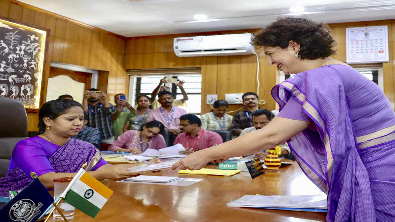 પ્રિયંકા ગાંધીએ કેરળના વાયનાડથી લોકસભા પેટાચૂંટણી માટે ઉમેદવારી નોંધાવી હતી. પ્રિયંકા ગાંધીની આ પ્રથમ ચૂંટણી લડાઈ છે. પ્રિયંકા એલડીએફ અને ભાજપના ઉમેદવારો સામે ચૂંટણી જંગ લડશે. વાયનાડમાં 13 નવેમ્બરે મતદાન થશે અને 23 નવેમ્બરે મતગણતરી થશે.