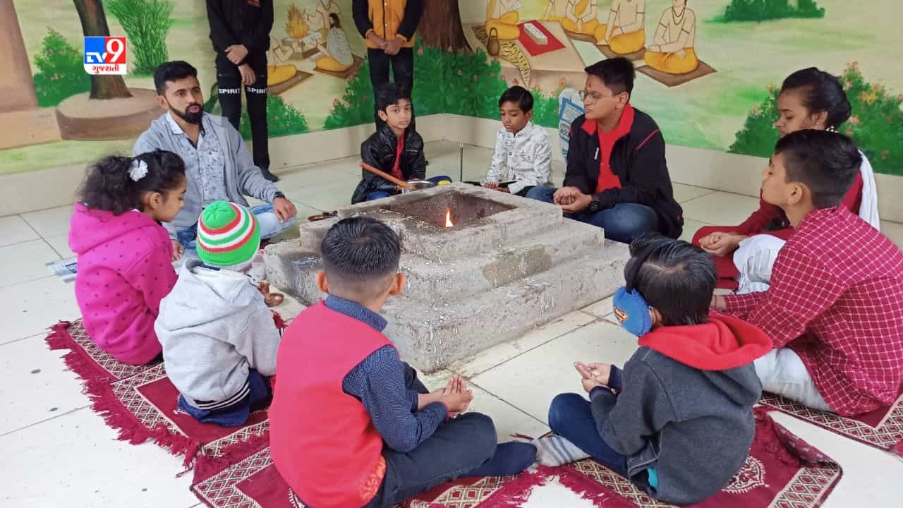 સવારે શાળાએ આવતાની સાથે જ સૌથી પહેલું કામ યજ્ઞ કરવાનું કરવામાં આવે છે. આ ઉપરાંત જે બાળકનો જન્મદિવસ હોય તે બાળકને એક સંકલ્પ પણ લેવડાવવામાં આવે છે.